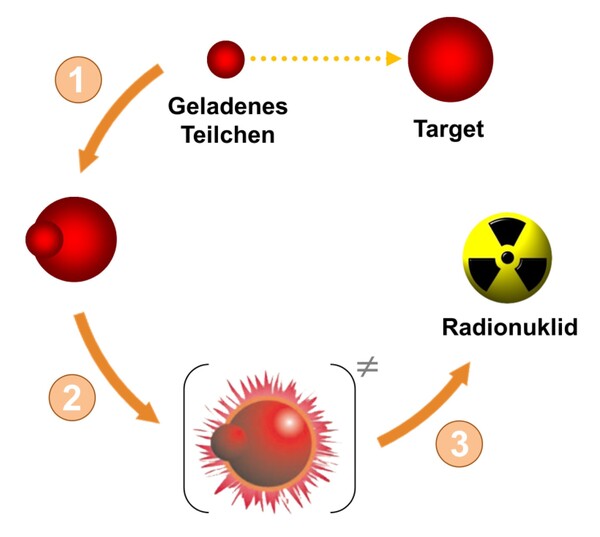 Radionuklide wie Iod-131 oder Radium-223 konzentrieren sich aufgrund ihrer biologisch-chemischen Eigenschaften direkt in den Zielorganen (Schilddrüse bzw. Knochen). Wenn kein natürlicher Anreicherungseffekt der Radionuklide besteht, werden sie durch den Einsatz radiochemischer Markierungsverfahren an ein Trägermolekül gekoppelt, das sich bevorzugt in einem bestimmten Organ oder krankhaften Zellen anreichert (Abb. 2).